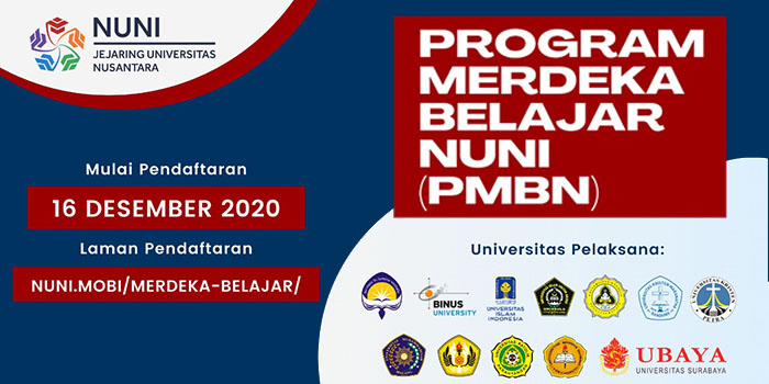 Universitas Katolik Parahyangan (Unpar) mendukung penyelenggaraan MBKM, serta mendorong mahasiswa untuk turut terlibat aktif meningkatkan wawasannya. Untuk itu, melalui Nationwide University Network in Indonesia – Jejaring Universitas Nusantara (NUNI), Unpar membuka kesempatan bagi mahasiswa untuk mengikuti MBKM dalam Program Merdeka Belajar Nuni (PMBN). Program yang pendaftarannya telah dibuka pada 16 Desember 2020 ini akan dimulai pada Semester Genap Tahun Akademik 2020/2021.