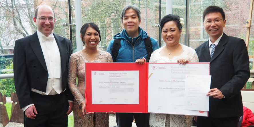 Sidang terbuka ini merupakan buah manis dari perjalanan panjang Dr. Jenny selama menempuh pendidikan doktoral di Jurusan Teknik Kimia, University of Groningen, Belanda, sejak tahun 2009. Dr. Jenny melakukan penelitian di bawah bimbingan Prof. Dr. Ir. H J Heeress, berfokus pada studi pembuatan bahan kimia antara dari biomassa, secara khusus senyawa furan (furfural dan 5-HMF). Dalam disertasinya, Dr. Jenny meneliti pengaruh berbagai kondisi operasi, bahan baku gula, dan penggunaan katalis, terhadap produksi furan. Penelitian yang telah dilakukan ini berhasil dipublikasikan pada berbagai jurnal internasional bereputasi.