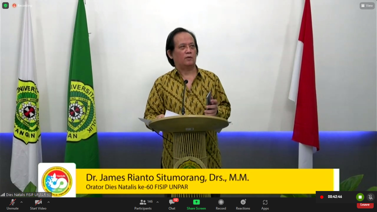 Fakultas Ilmu Sosial dan Ilmu Politik Universitas Katolik Parahyangan (FISIP UNPAR) merayakan Dies Natalis ke-60 pada Rabu (25/8/2021) secara hybrid. Acara yang mengangkat topik “Kesiapan Masyarakat Indonesia Bertransformasi Menjadi Masyarakat Digital” diharapkan menjawab serangkaian tantangan dan peluang bagi UNPAR menuju keadaban baru dan transformasi keberlanjutan sejalan dengan semangat Merdeka Belajar kampus Merdeka (MBKM).