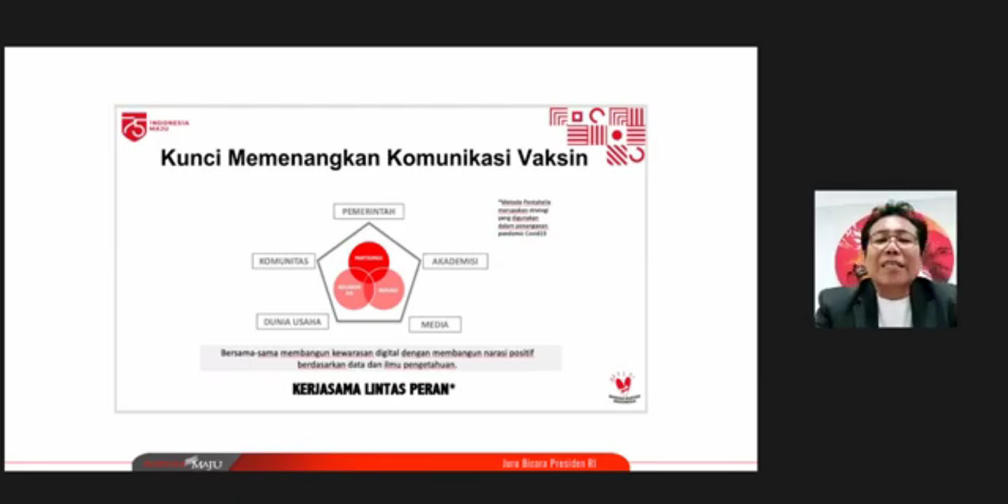 Webinar diawali dengan paparan utama “Pentingnya Vaksinasi Massal: Aspek Keamanan Vaksin dan Pelaksanaan Vaksin Massal” yang disampaikan oleh Fadjroel Rachman selaku Juru Bicara Presiden RI. Dalam penjelasannya, Fadjroel menekankan bagaimana kondisi Indonesia satu tahun sejak pecahnya pandemi di Wuhan, China. Wuhan, sebagai kota pertama yang mengalami lockdown, telah menyelesaikan dan mengatasi pandemi. Sementara Indonesia, hingga saat ini, masih berjuang dengan angka yang terus naik pesat.