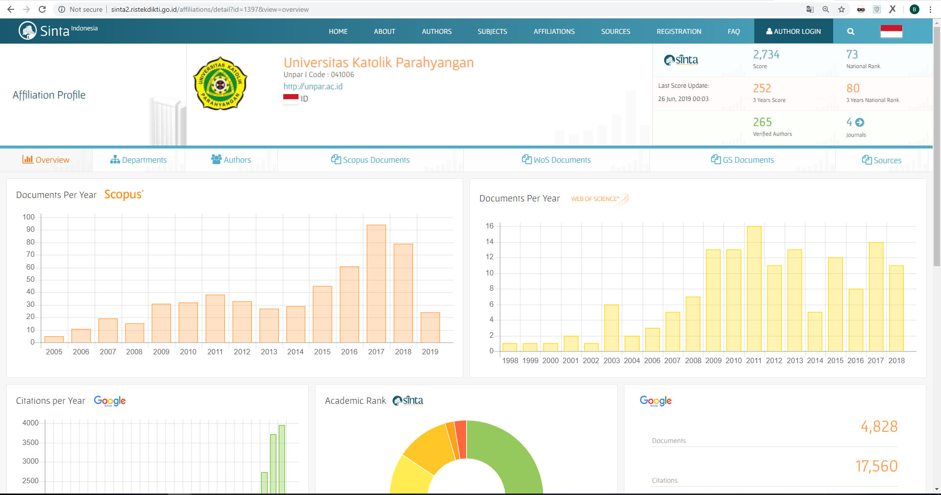 Tahun 2019 menjadi babak baru bagi penyelenggaraan jurnal ilmiah yang ada di Unpar. Hal ini ditandai dengan terakreditasinya dua jurnal Unpar dalam SINTA, yaitu Jurnal Veritas et Justitia (VeJ) yang dikelola oleh Fakultas Hukum, serta Jurnal Ilmiah Hubungan Internasional (JIHI) dari Parahyangan Centre for International Studies (PACIS). Keduanya telah berhasil mengajukan Akreditasi Jurnal Nasional (Arjuna) dan masuk dalam kategori Sinta 2 (S2).