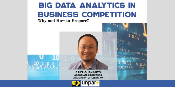Unpar Plus menghadirkan webinar bertajuk “Big Data Analysis in Business Competition: Why and How to Prepare” pada Jumat (8/5/2020). Webinar yang terbuka untuk umum ini mengundang Dr. Arief Gusnanto yang merupakan Associate Professor di Department of Statistics, University of Leeds sebagai narasumber dengan moderator Gandhi Pawitan.
