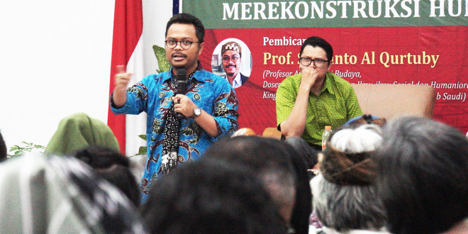 Seminar yang bertema “Pancasila dan Radikalisme: Merekonstruksi Humanitas Indonesia” ini menghadirkan Profesor Sumanto Al Qurtuby, peneliti ilmu sosial dan humaniora dari King Fahd University (Saudi Arabia) sebagai narasumber, serta dipandu oleh Topik Mulyana, S.S, M.Hum.
