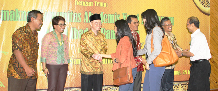 Parahyangan Catholic University (UNPAR) held a Silaturahim (gathering) and Halal Bi Halal (asking for forgiveness) on 12 Syawal 1436 Hijriyah (Islamic year) (28/7) at the Hall of the Faculty of Economics, Building 9 on the 8th floor. In addition to Parahyangan Catholic University’s scientific community, retired UNPAR employees, partners and other parties involved in cooperation with UNPAR were also invited. Those parties are the media, police and schools. The Tausyiah (Islamic Religious preaching) was conveyed by Professor Bambang Suryoatmono, Ph.D. and opened and closed by the performances of the Nasyid vocal group Hawari.