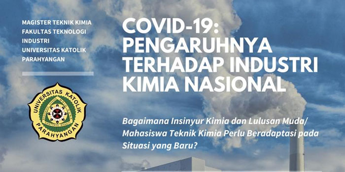 Program Studi Magister Teknik Kimia Universitas Katolik Parahyangan (MTK TK UNPAR) mengadakan Webinar yang diselenggarakan pada Kamis (18/6/2020). Topik yang dibahas yakni “Pengaruh COVID-19 terhadap Industri Kimia Nasional” yang dimoderatori oleh Dr. Budi Husodo Bisowarno. Sebagai narasumber dihadirkan Bapak Dr. Ir. Andreas Widodo, seorang Direktur Utama PT Energy Management Indonesia (EMI), yang sangat mengetahui situasi nasional terkini.