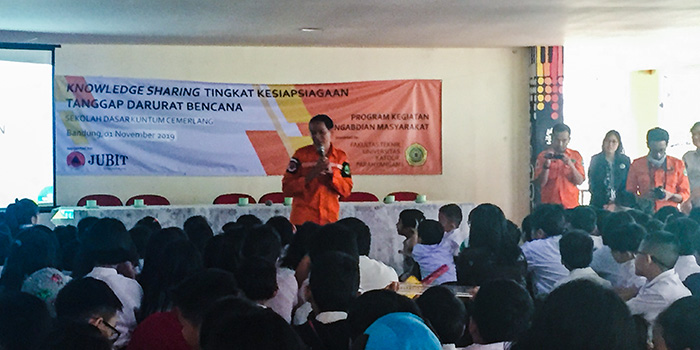 Salah satu upaya yang difokuskan oleh pemerintah Indonesia saat ini untuk mengurangi kerugian akibat bencana adalah dengan meningkatkan kesiapsiagaan, dan penanganan darurat bencana di seluruh lapisan masyarakat. Untuk mendukung usaha tersebut, Fakultas Teknik UNPAR menyelenggarakan Program Pengabdian kepada Masyarakat (PKM) berupa knowledge sharing kesiapsiagaan bencana.