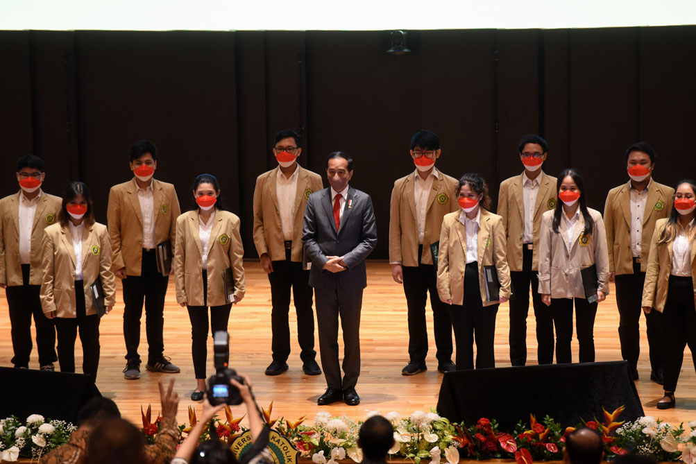 Turut mendampingi Presiden dalam acara tersebut yaitu, Menteri Pendidikan, Kebudayaan, Riset, dan Teknologi Nadiem Makarim, Sekretaris Kabinet Pramono Anung, Gubernur Jawa Barat Ridwan Kamil, Plt. Wali Kota Bandung Yana Mulyana, dan Rektor UNPAR Mangadar Situmorang. (Ira Veratika SN-Humkoler UNPAR)