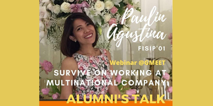Pada Rabu (20/5/2020), Biro Kemahasiswaan dan Alumni Universitas Katolik Parahyangan (BKA UNPAR) mengadakan Webinar bertajuk “Survive on Working at Multinational Company (MNC)”. Kegiatan ini dibawakan oleh Ayu Pritandya Pertiwi dari BKA UNPAR dan menghadirkan Paulin Agustina sebagai pembicara.