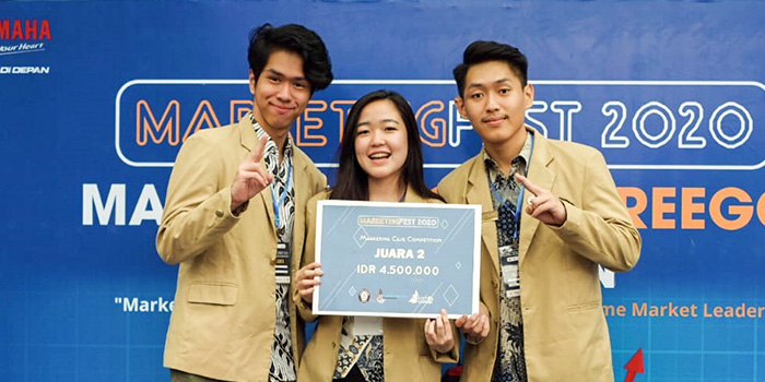 Program Studi Sarjana Teknik Industri Universitas Katolik Parahyangan (TI UNPAR) kembali mengukir prestasi di tingkat nasional. Tim DOVIKA mahasiswa sarjana TI UNPAR yang terdiri dari Aido Jusman (6131801225), VIcky Lim (6131801046), dan Erika Michella (6131801109) berhasil meraih Juara 2 di kompetisi MarketingFest 2020 pada 22 Februari lalu.